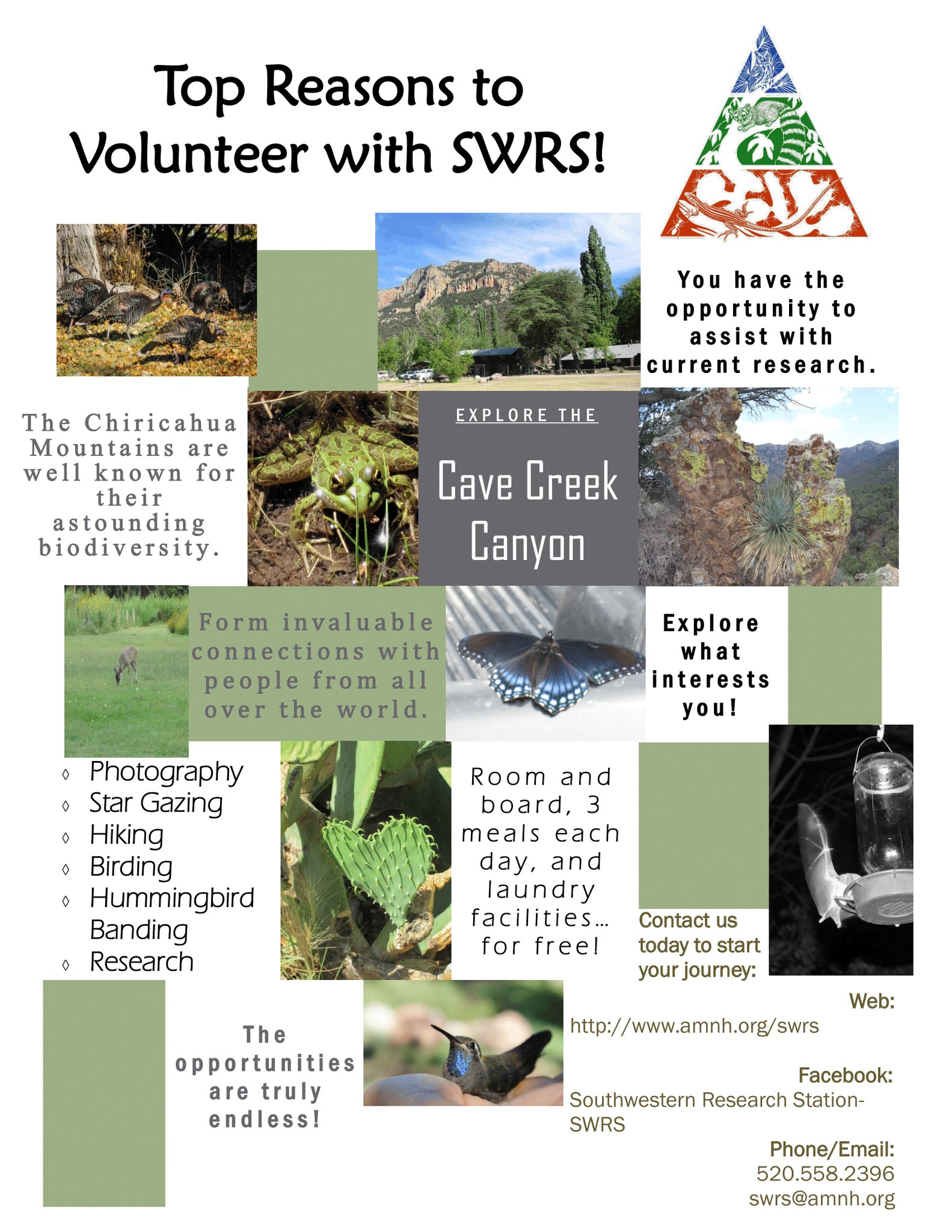 Dołącz do programu wolontariatu i kursów terenowych w Southwestern Research Station, American Museum of Natural History w górach Chiricahua (Arizona, USA) – jednym z najbardziej bioróżnorodnych regionów Ameryki Północnej. Czekają na Ciebie praktyczne szkolenia terenowe prowadzone przez ekspertów z ponad 30-letnim doświadczeniem: monitoring nietoperzy (field i acoustic survey), kurs rozpoznawania i biologii motyli, kursy poświęcone herpetologii, pszczołom oraz ekologii drzew pustynnych.